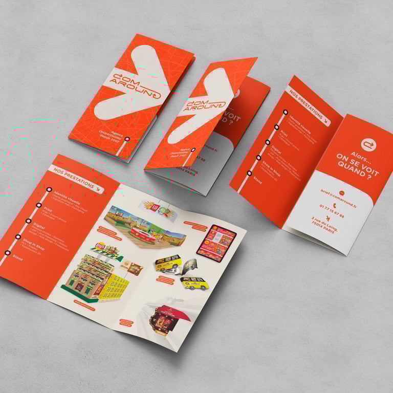Conception des supports selon une nouvelle charte graphique, pour assurer cohérence visuelle et professionnalisme. Mise en page soignée et adaptée aux besoins de communication de l'agence de communication.