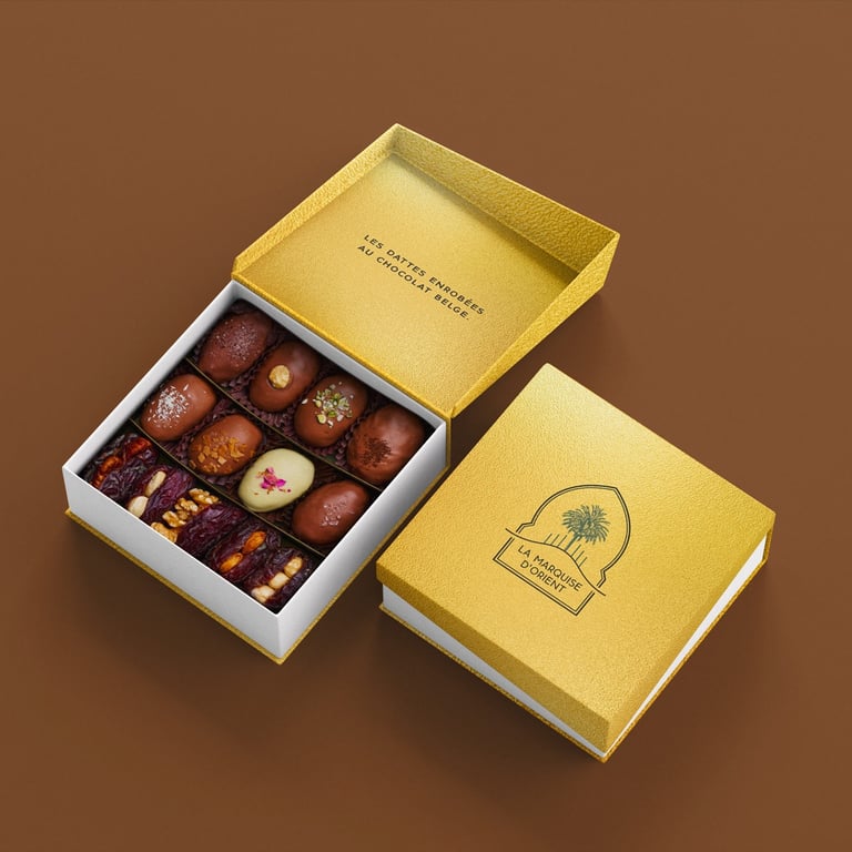 Création de l’identité visuelle d’une marque belge de douceurs naturelles, spécialisée dans les dattes et figues enrobées de chocolat et garnies de fruits secs. Conception du logo alliant authenticité, gourmandise et luxe.