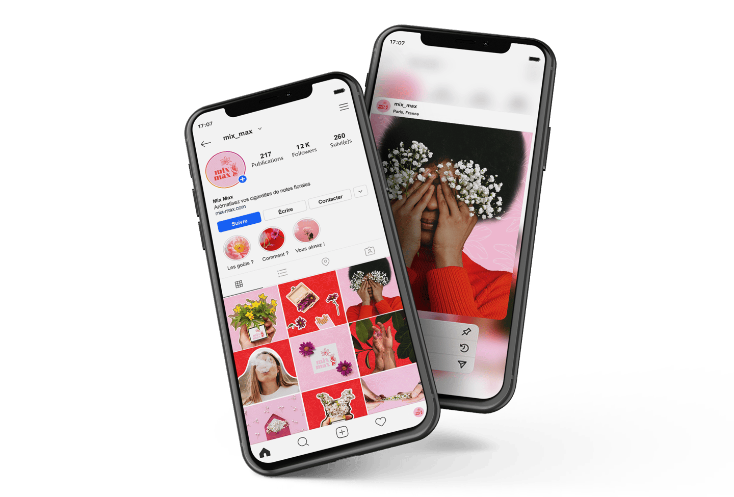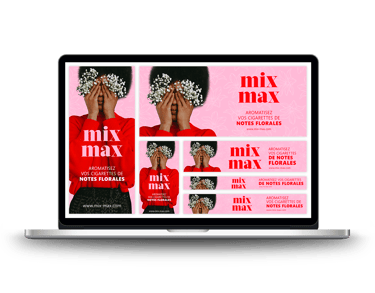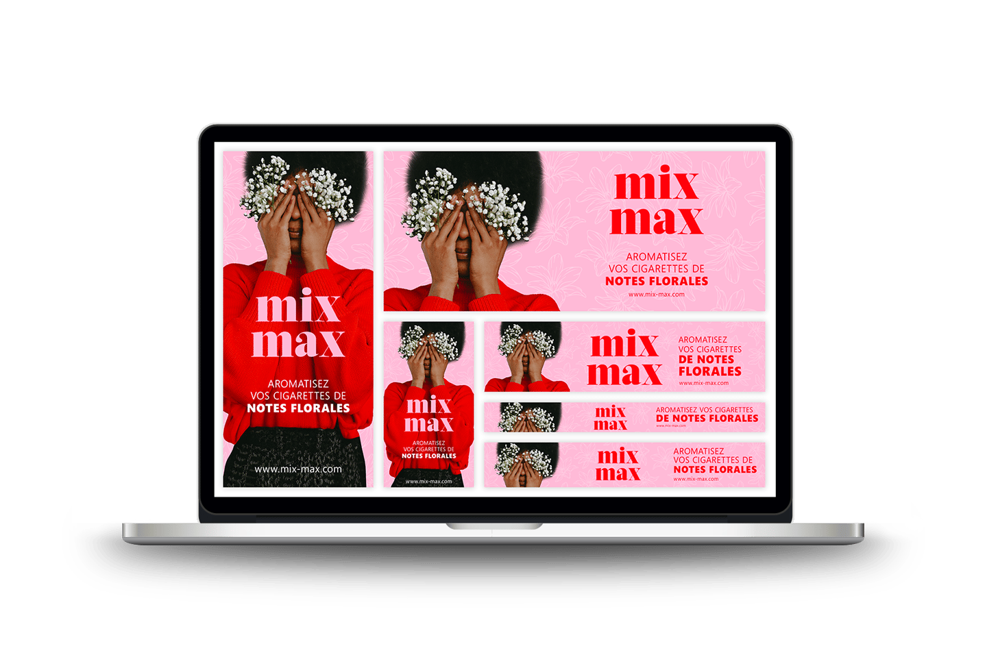 La marque fictive Mix Max émerge comme une fusion audacieuse entre l'univers des cigarettes et la beauté des fleurs. Son identité visuelle est soigneusement élaborée, incarnée par un logo qui associe une cigarette stylisée à une fleur délicate, symbolisant à la fois la sensualité et la nature. La charte graphique, riche en couleurs flashy et en motifs floraux, évoque une atmosphère de raffinement et de détente. Mix Max aspire à séduire les amateurs de cigarettes en leur offrant une alternative esthétique, mariant l’attrait du tabac à la légèreté des fleurs. Cette marque s’inscrit dans une démarche originale, transformant la perception traditionnelle de la cigarette en un véritable art de vivre.