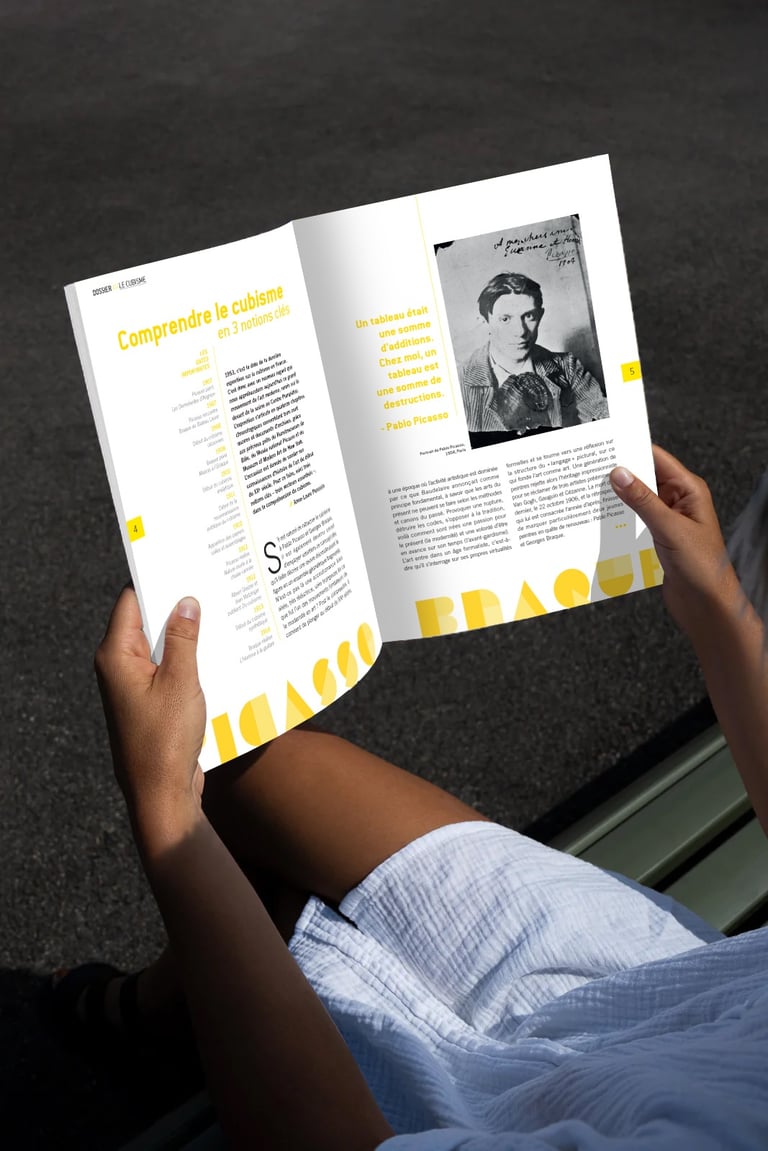 Refonte progressive de la maquette (112 pages) avec amélioration graphique, création de nouvelles rubriques et adaptation du design aux contenus éditoriaux. Conception de pages publicitaires pour les galeries d’art parisiennes, en cohérence avec l’univers visuel du magazine.