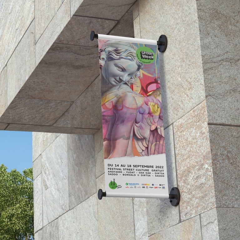Des kakemonos aux stickers, chaque format a été élaboré pour refléter l'esprit urbain et dynamique de l'événement.