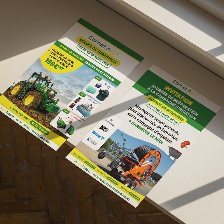 L’enjeu graphique était de proposer des supports clairs, impactants et immédiatement compréhensibles, tout en respectant les codes du secteur agricole.