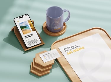 J’aime concevoir des univers cohérents et distinctifs, qui racontent l’essence d’une marque. Voici un aperçu de mes projets branding : des créations pensées pour affirmer une identité, inspirer confiance et laisser une empreinte durable.