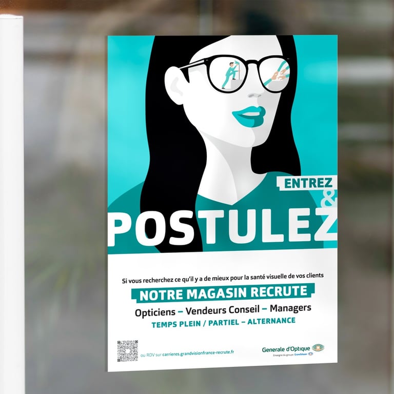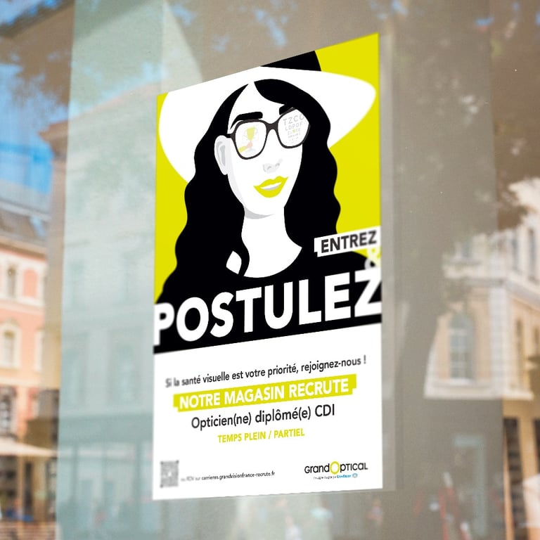 Création d’illustrations de personnages pour GrandOptical et Générale d’Optique, accompagnées d’une planche d’illustrations détaillées et de la mise en page d’affiches pour l’ensemble des marques du groupe GrandVision.