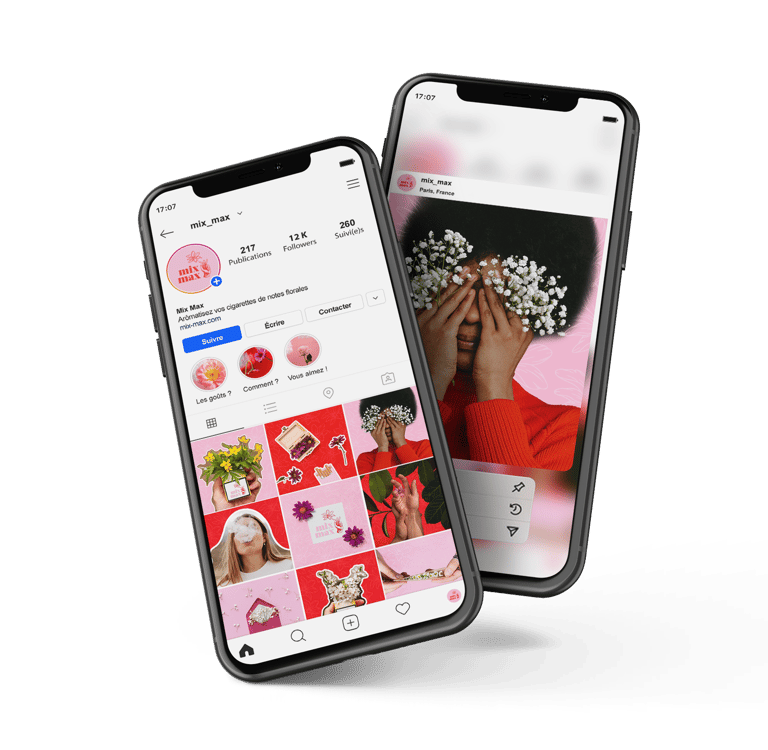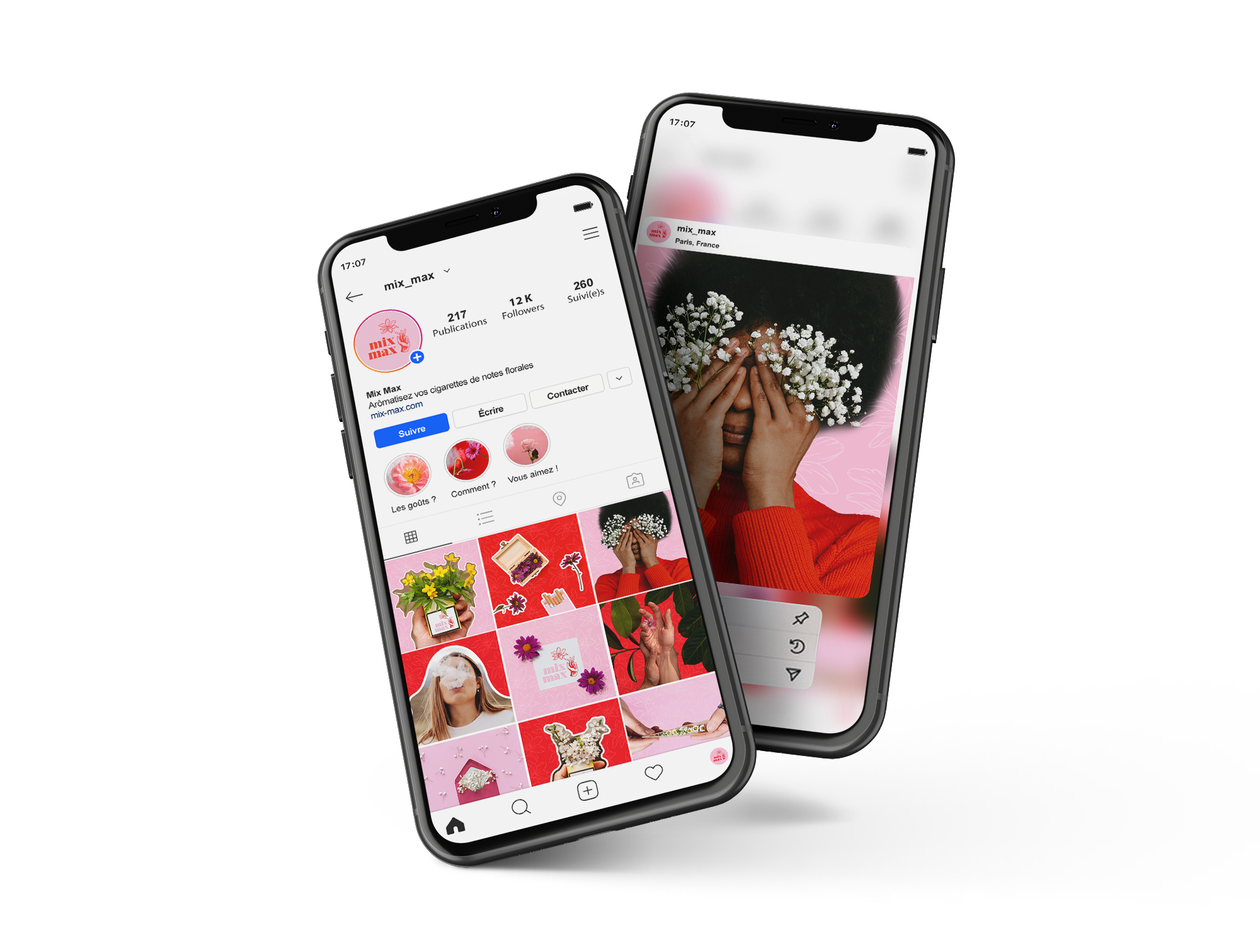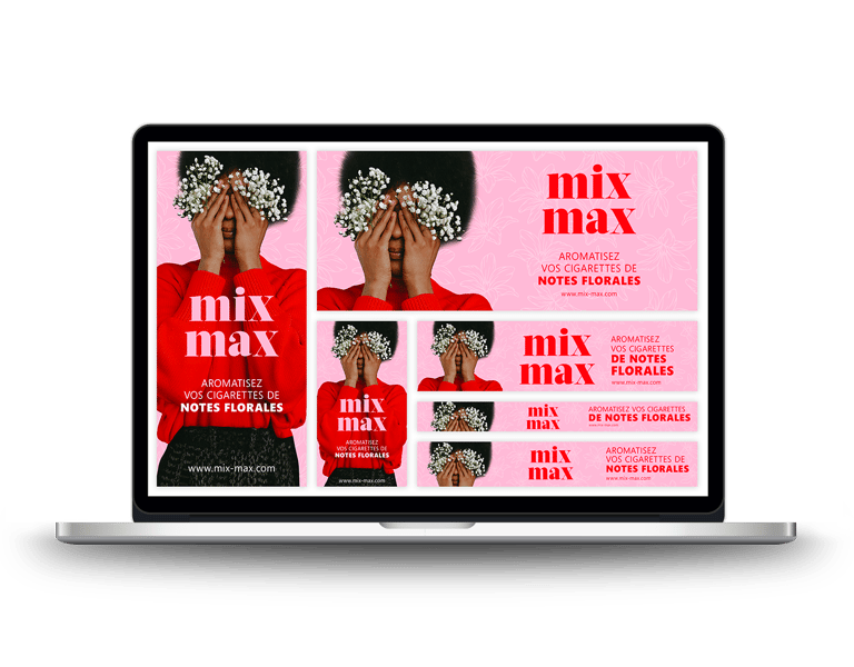 La marque fictive Mix Max émerge comme une fusion audacieuse entre l'univers des cigarettes et la beauté des fleurs. Son identité visuelle est soigneusement élaborée, incarnée par un logo qui associe une cigarette stylisée à une fleur délicate, symbolisant à la fois la sensualité et la nature. La charte graphique, riche en couleurs flashy et en motifs floraux, évoque une atmosphère de raffinement et de détente. Mix Max aspire à séduire les amateurs de cigarettes en leur offrant une alternative esthétique, mariant l’attrait du tabac à la légèreté des fleurs. Cette marque s’inscrit dans une démarche originale, transformant la perception traditionnelle de la cigarette en un véritable art de vivre.
