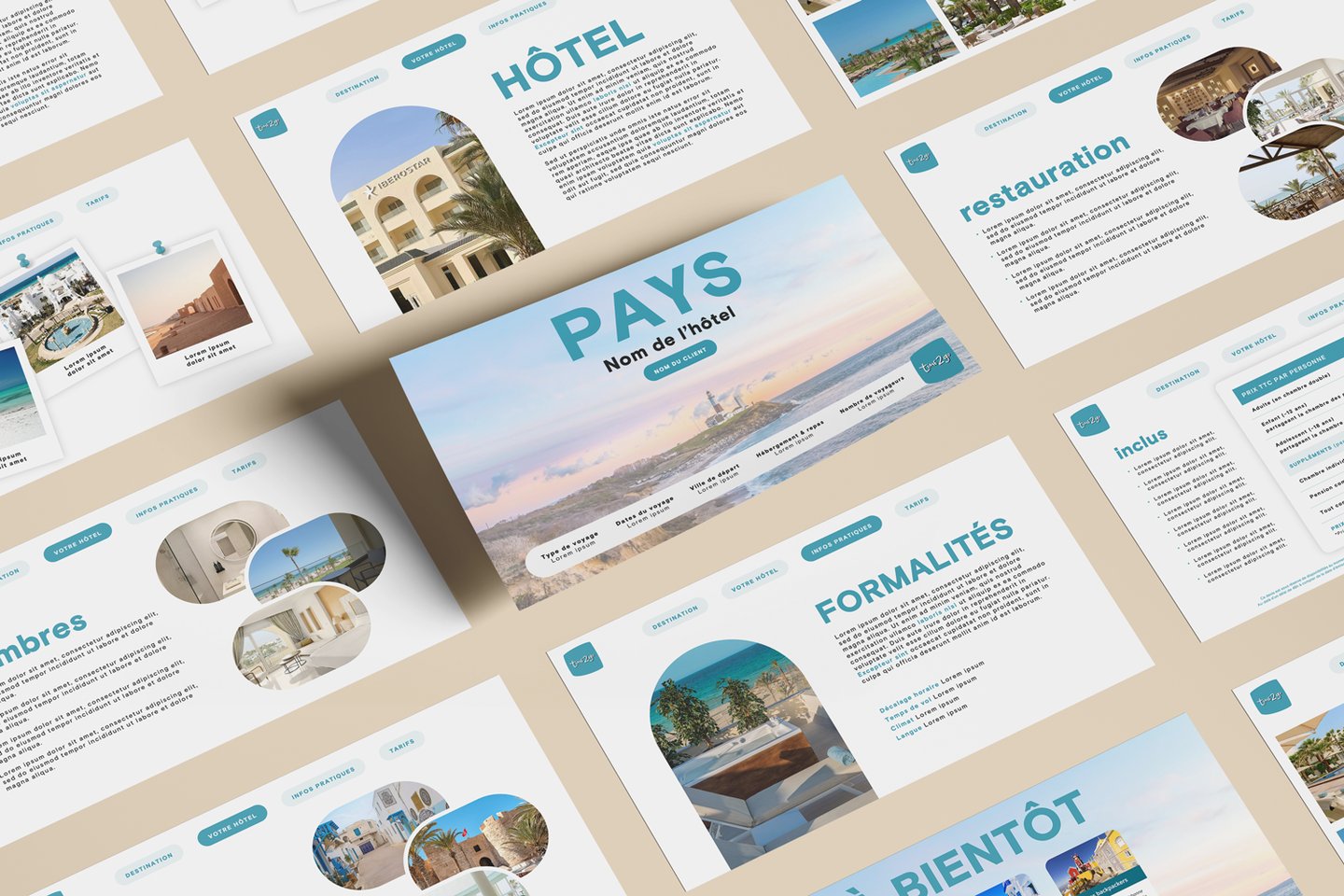 Refonte complète du template de devis PowerPoint pour une agence de voyages sur-mesure, avec pour objectif de moderniser l’image de la marque et d’améliorer l’expérience client.